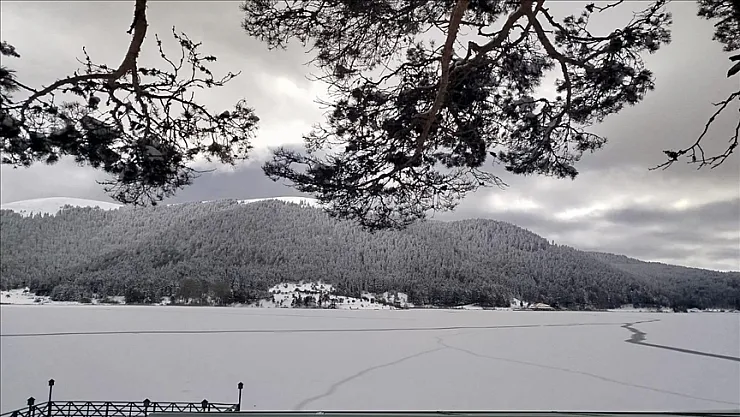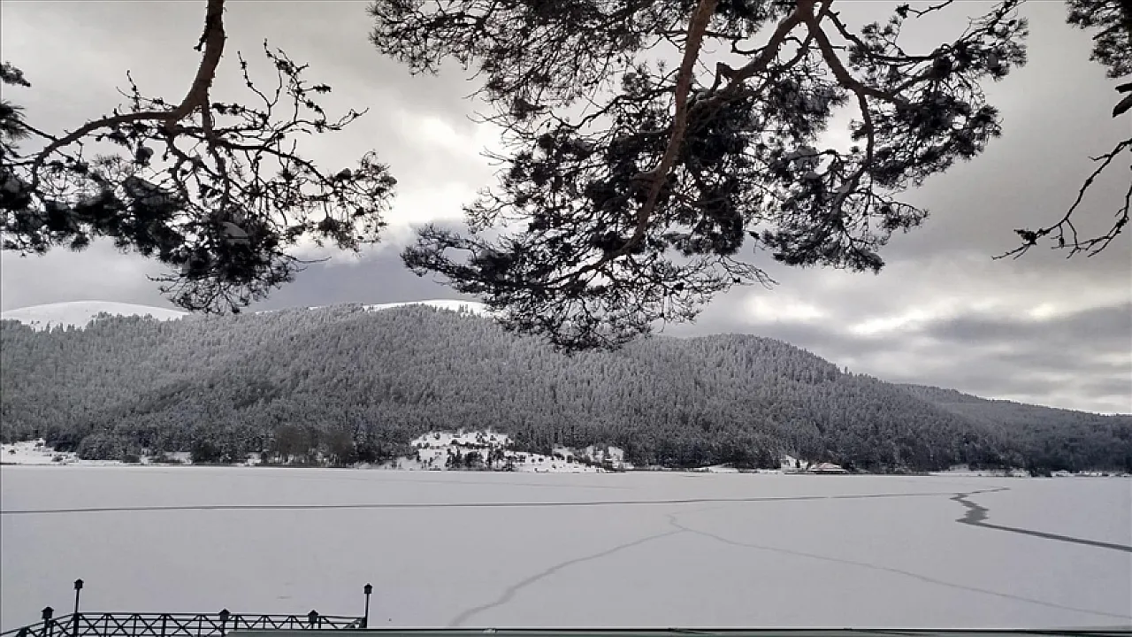 Bolu'nun doğal güzellikleriyle ünlü Abant Gölü Milli Parkı'ndaki gölün yüzeyi buzla kaplandı.
