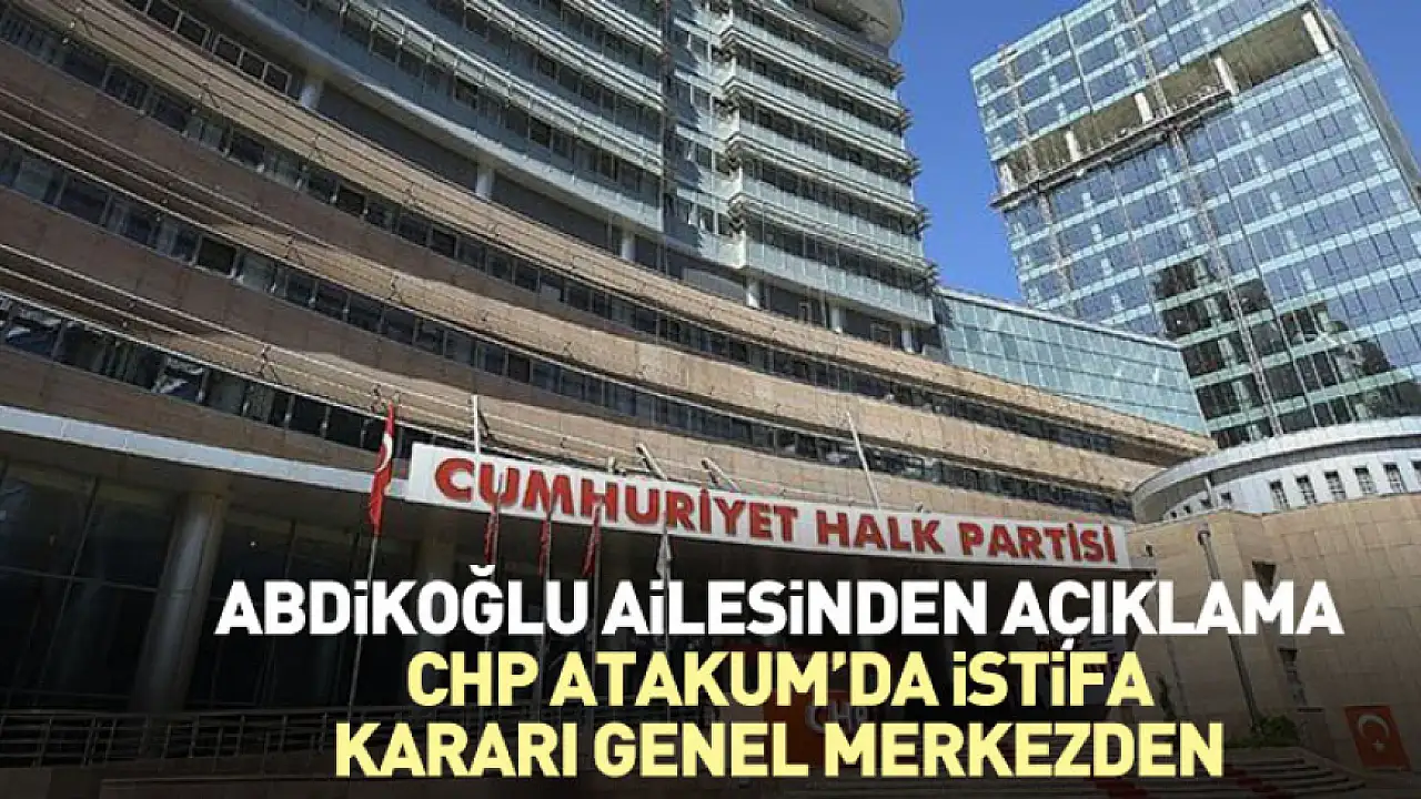 Samsun'da CHP Atakum İlçe Başkanlığı görevinden istifa kararı alındığı bildirildi. Abdikoğlu ailesinin yaptığı açıklamaya göre, istifa kararının CHP Genel Merkezi tarafından alındığı vurgulandı.