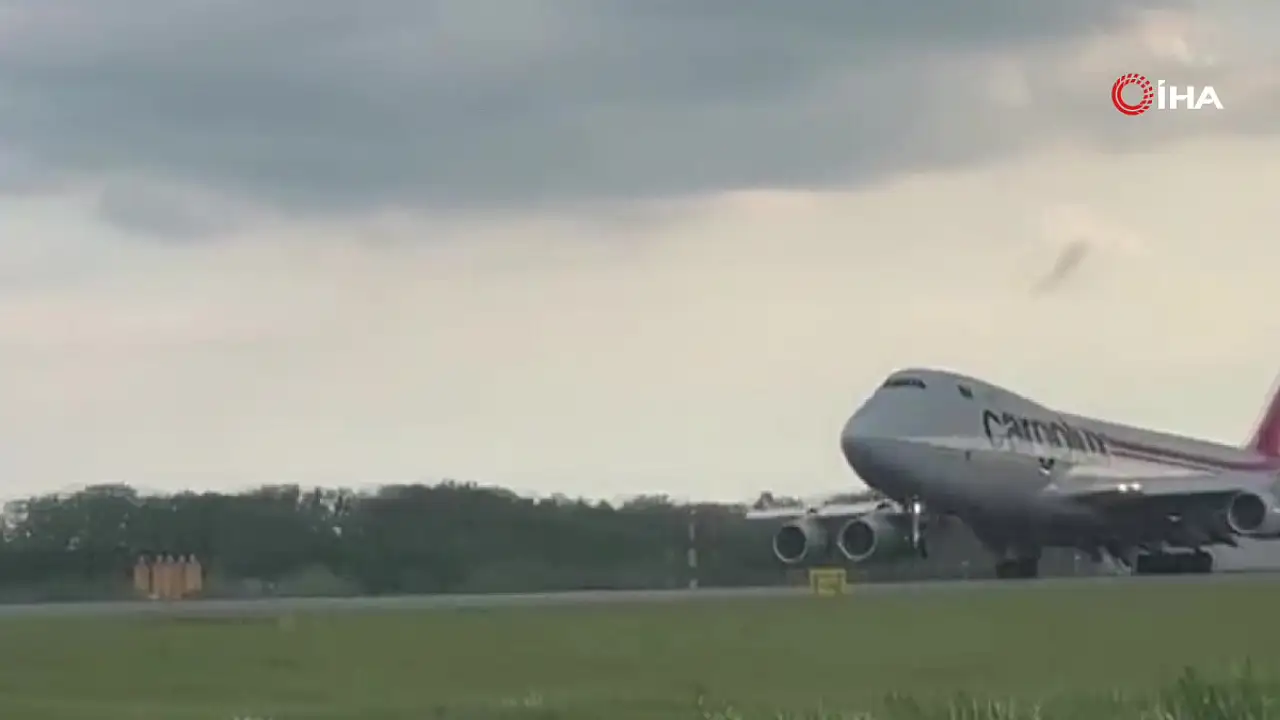 Lüksemburg'da teknik arıza sonucu acil iniş yapmak zorunda kalan kargo uçağının iniş takımı koptu.