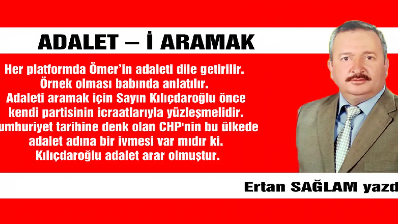 Her platformda Ömer’in adaleti dile getirilir. Örnek olması babında anlatılır. Adaleti aramak için Sayın Kılıçdaroğlu önce kendi partisinin icraatlarıyla yüzleşmelidir. Cumhuriyet tarihine denk olan CHP'nin bu ülkede adalet adına bir ivmesi var mıdır ki Kılıçdaroğlu adalet arar olmuştur.