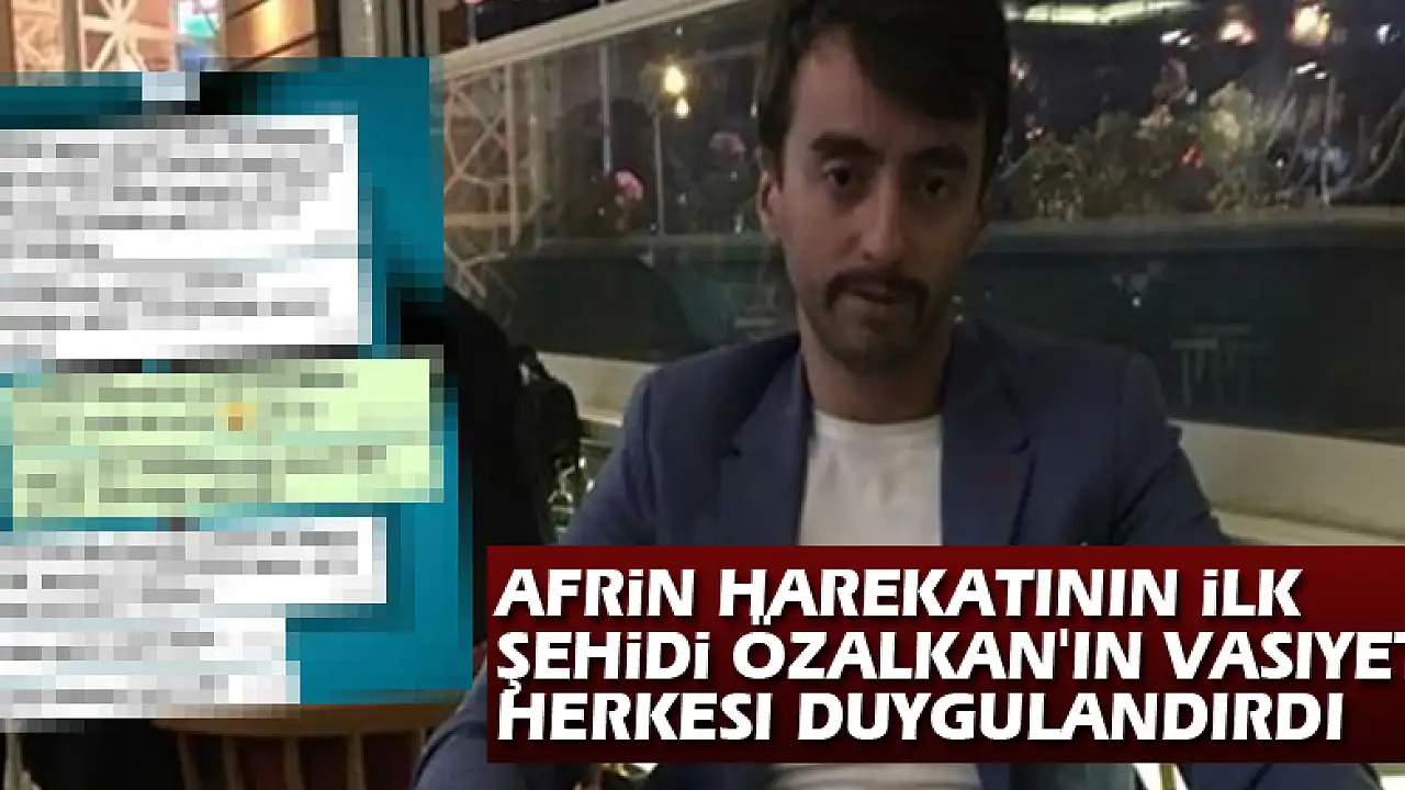 Afrin harekatının ilk şehidi Özalkan'ın vasiyeti herkesi duygulandırdı