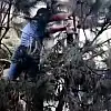 Samsun'da ağaçta uzun süre mahsur kalan kediyi ağaca çıkan bir vatandaş kurtardı