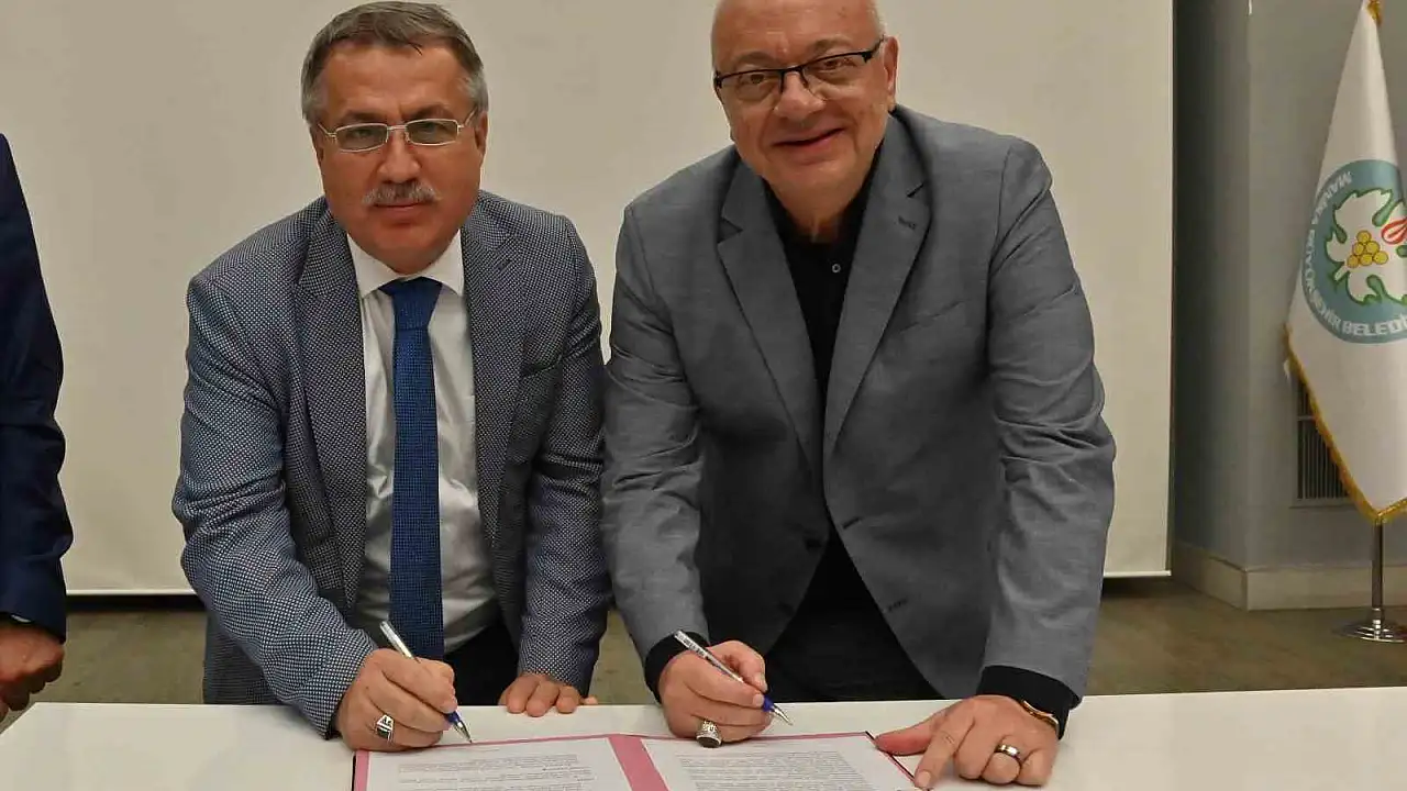 Manisa Büyükşehir Belediye Başkanı Cengiz Ergün ile Ahmetli Belediye Başkanı Ahmet Alhan, Ahmetli Çayı üzerinde yapılacak olan menfez tipi dere geçiş yapısı inşa edilmesi noktasında protokol imzaladı.