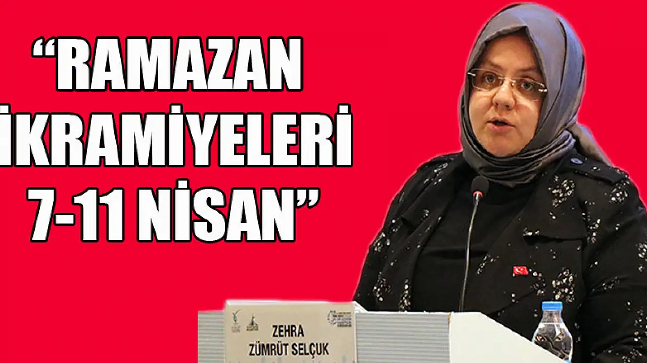 Aile, Çalışma ve Sosyal Hizmetler Bakanı Zehra Zümrüt Selçuk, 'Emeklilerimizin Ramazan Bayramı ikramiyelerini 7-11 Nisan tarihleri arasında veriyoruz' dedi.