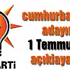 AK Parti kaynaklarından edinilen bilgiye göre, AK Parti’nin Cumhurbaşkanı adayının Genel Başkan ve Başbakan Recep Tayyip Erdoğan’ın, 1 Temmuz tarihinde açıklayacağı öğrenildi.