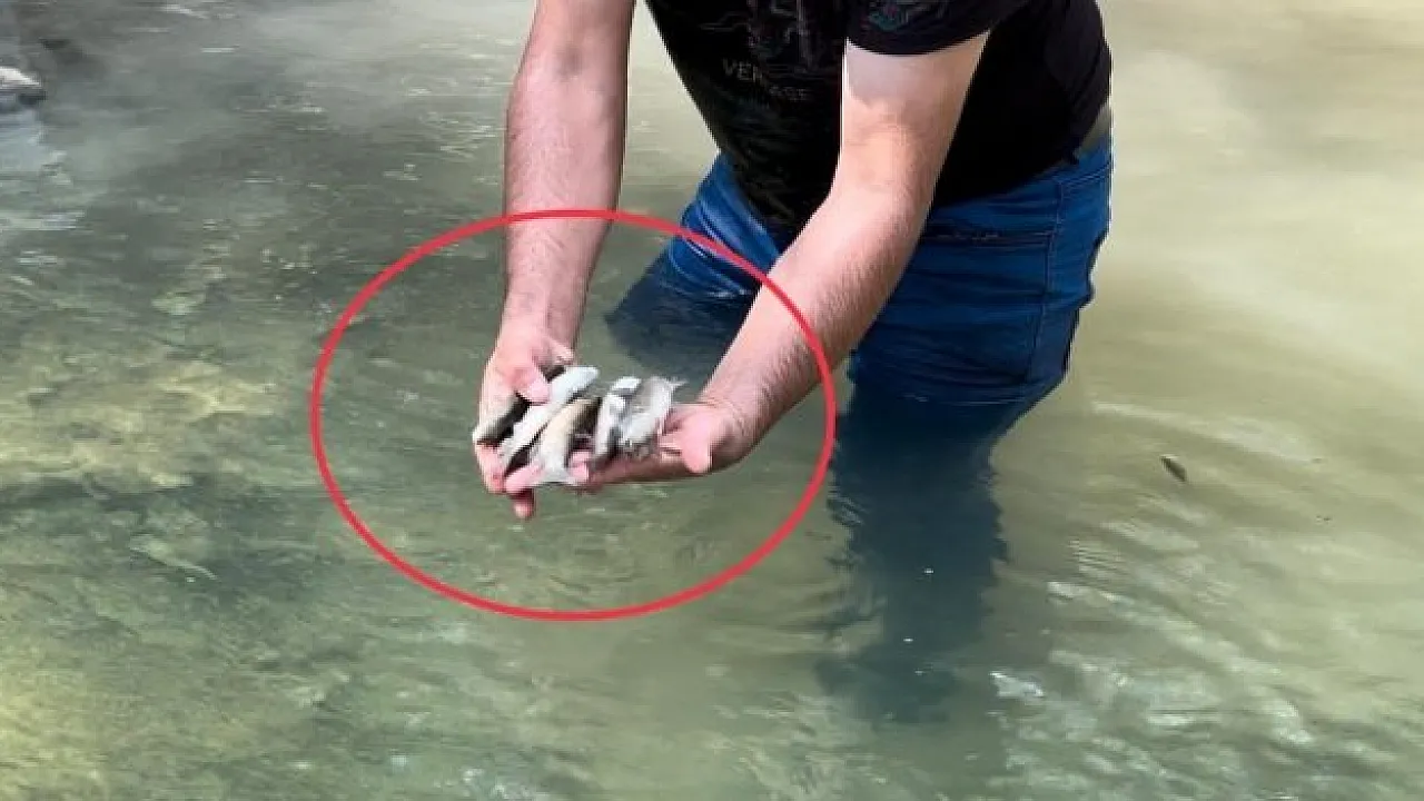 Akarsu ıslahı çalışmasında suya çimento karışınca binlerce balık telef oldu