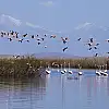 Göçmen kuşların Türkiye'deki önemli göç yollarından biri üzerinde bulunan Akgöl sazlıkları, başta flamingolar olmak üzere birçok canlıya ev sahipliği yapıyor.
