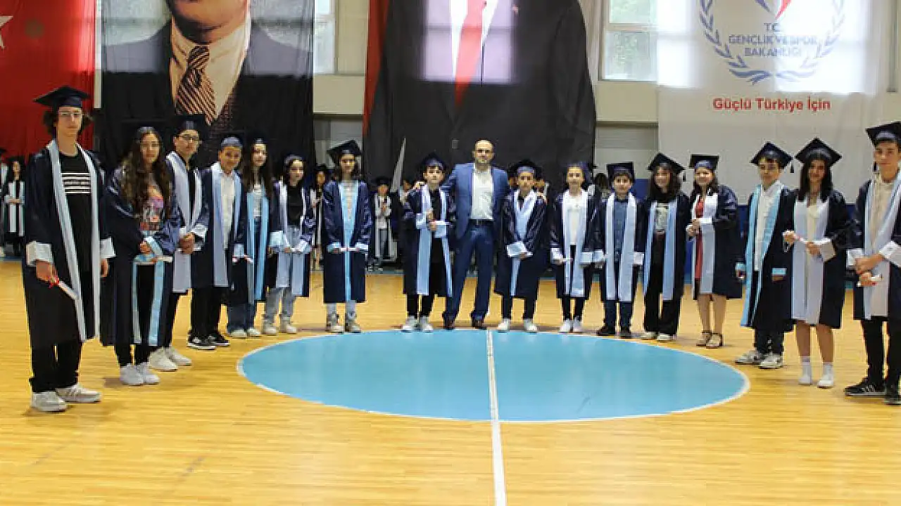 Alaçam Spor Salonu'nda düzenlenen törende konuşan okul müdürü Taylan Mete, öğrenciler için bir dönemin sonu, yeni bir yolculuğun da başlangıcı olduğunu söyledi.