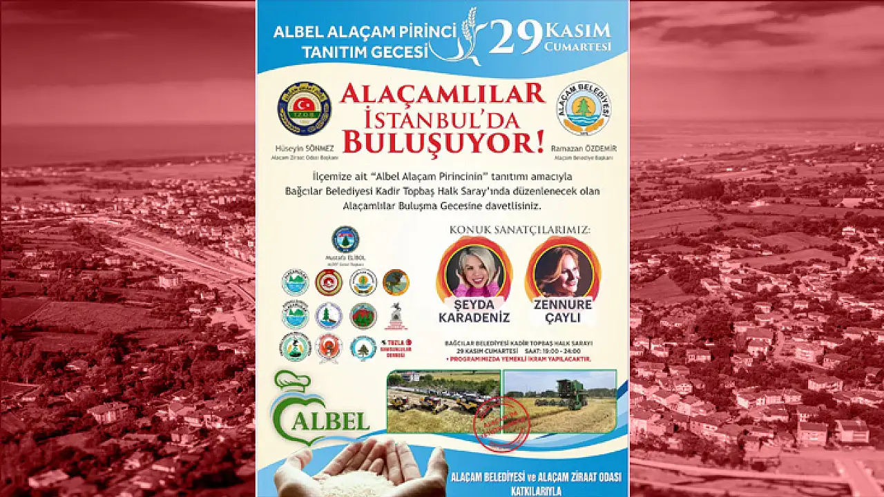 Alaçam Belediyesi ve Alaçam Ziraat Odası iş birliğiyle organize edilen ‘Albel Alaçam Pirinci Tanıtım Gecesi’, 29 Kasım Cumartesi günü Bağcılar Belediyesi Kadir Topbaş Halk Sarayında yapılacak.