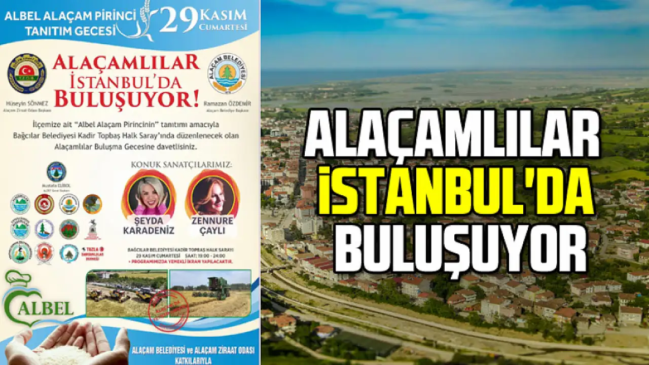 “Alaçamlılar İstanbul’da buluşuyor” sloganıyla gerçekleştirilecek etkinlikte, Alaçam’ın coğrafi işaret tescilli pirinci tanıtılacak ve misafirlere yöresel yemek ikramı yapılacak. Gecede, sanatçılar Şeyda Karadeniz ve Zennure Çaylı sahne alacak. Program, saat 19.00–24.00 arasında gerçekleştirilecek. Program, 19.00 – 24.00 saatleri arasında gerçekleştirilecek olup, Şeyda Karadeniz ve Zennure Çaylı sahne alacak.