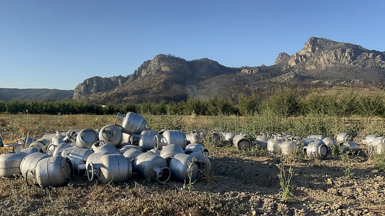 Alevlerin uğradığı köydeki bütün tüpler tarlaya istiflendi