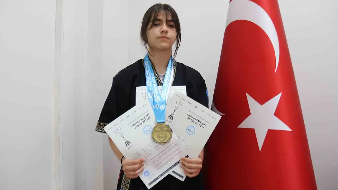 Gürcistan'ın Kutaisi kentinde düzenlenen Alpagut Dünya Şampiyonası'nda altın madalya kazanan 16 yaşındaki Nisa Nur Tur, İstiklal Marşı'nı okutmanın gururunu yaşadığını ve ileride milli sporcu olmayı hedeflediğini söyledi.