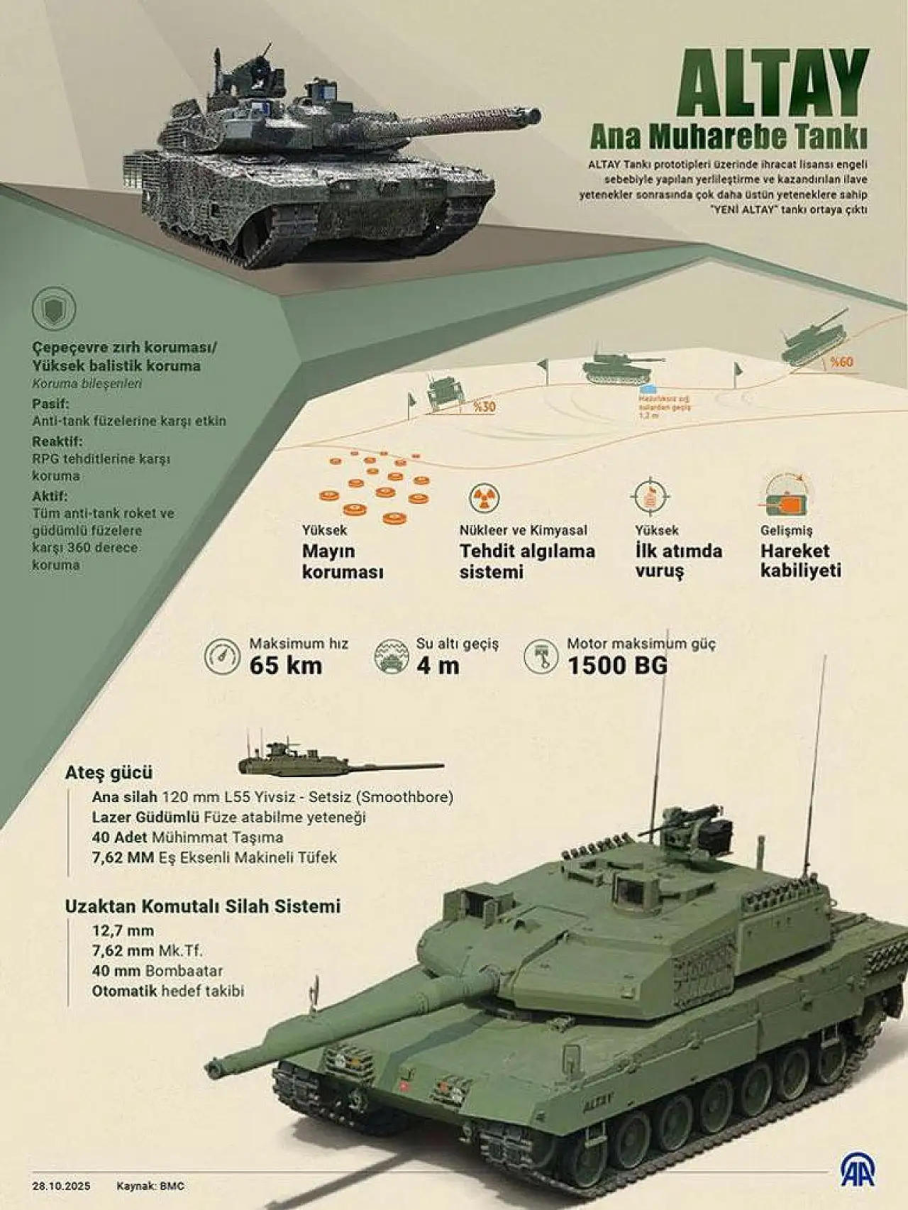 İhracat lisansı engelleri nedeniyle yapılan yerlileştirme çalışmaları sonucu geliştirilen Yeni Altay, çok daha üstün kabiliyetlerle donatıldı. Tank, pasif, reaktif ve aktif koruma sistemleriyle muharebe sahasında 360 derece koruma sağlıyor. Özellikle RPG ve güdümlü füzelere karşı yüksek direnç sunan yeni nesil reaktif (ERA) ve kafes zırh sistemleri dikkat çekiyor.