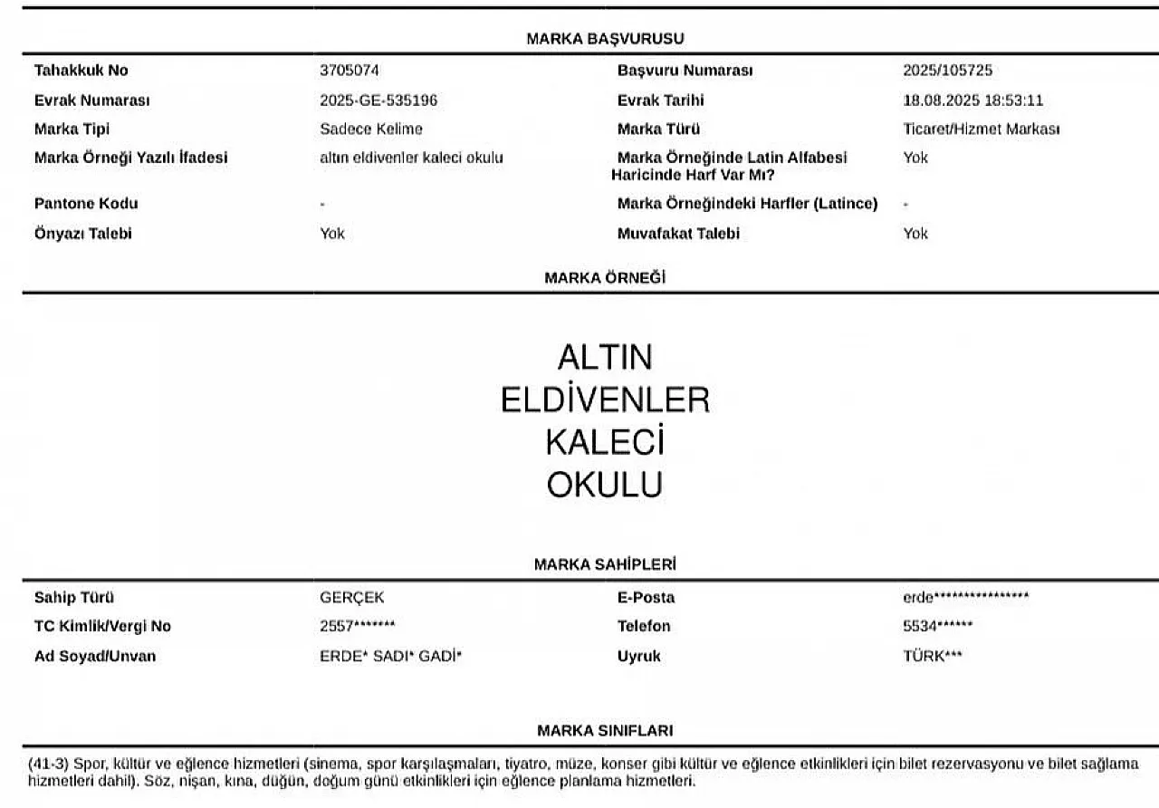 Altın Eldivenler Kaleci Okulu, sadece futbolcuların değil, özellikle kalecilerin teknik, taktik ve mental gelişimlerine katkı sağlamayı hedefliyor. Başvurunun ardından okulun adı marka koruması altına alınacak.