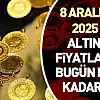 08 Aralık 2025 itibarıyla altın piyasası yatırımcılarda merak uyandırıyor. Gram altın 5.766 TL seviyesinden işlem görürken Kapalıçarşı altın türlerindeki fiyatlar dikkat çekiyor. 'Bugün altın ne kadar oldu?', 'Hangi tür kaç TL'den alınıp satılıyor?' soruları gündemde. İşte günün detaylı fiyat tablosu…
