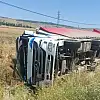 Amasya'nın Merzifon ilçesinde devrilen alüminyum yüklü tırın sürücüsü yaralandı.
