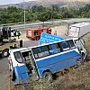 Edinilen bilgiye göre, Hatay’dan Samsun’a gitmek üzere yola çıkan Ethem Candemir yönetimindeki 31 R 4967 plakalı sebze yüklü tır, Amasya merkez Kapıkaya köyü girişinde virajda Ahmet Duran Çolak idaresindeki 05 BD 756 plakalı halk otobüsüne yandan çarparak yol üzerine devrildi. Çarpışmanın etkisiyle savrulan halk otobüsü trafik levhasına çarparak durabildi.