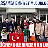 İlçe Emniyeti binasında ki polislerin yoğun ilgisi ile karşılaşan minik öğrenciler, polislere karanfil hediye ettiler.