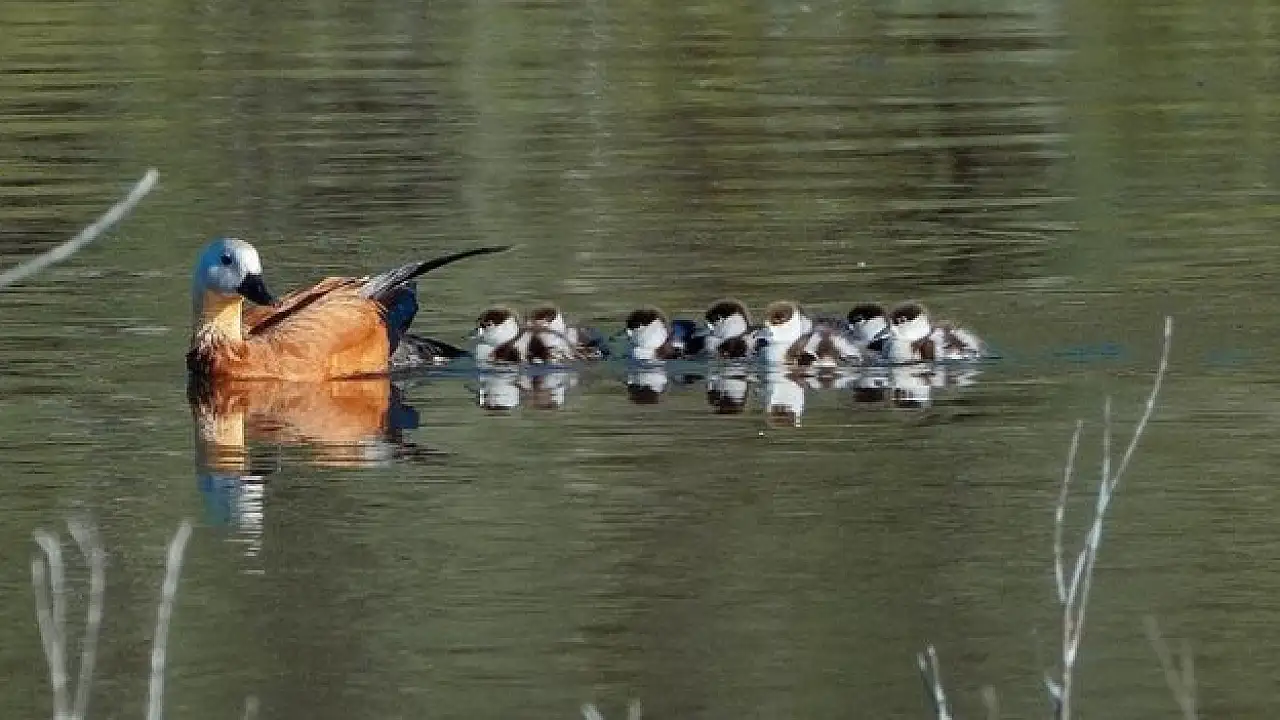 Kars'ta yumurtadan çıkan angut (angıt) yavruları Kars Barajı'nda yiyecek ararken görüntülendi.