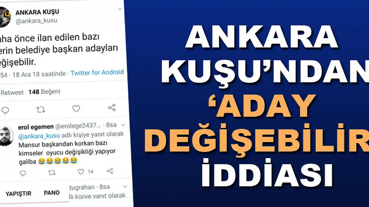ANKARA KUŞU'NDAN 'ADAY DEĞİŞEBİLİR' İDDİASI