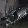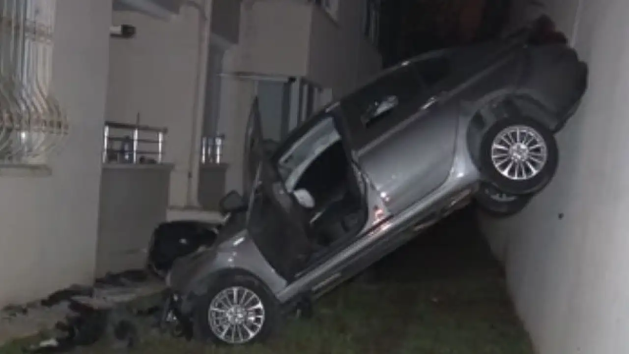 Ankara'da kontrolden çıkan otomobil binanın 3'üncü katına çarparak bina boşluğuna düştü.