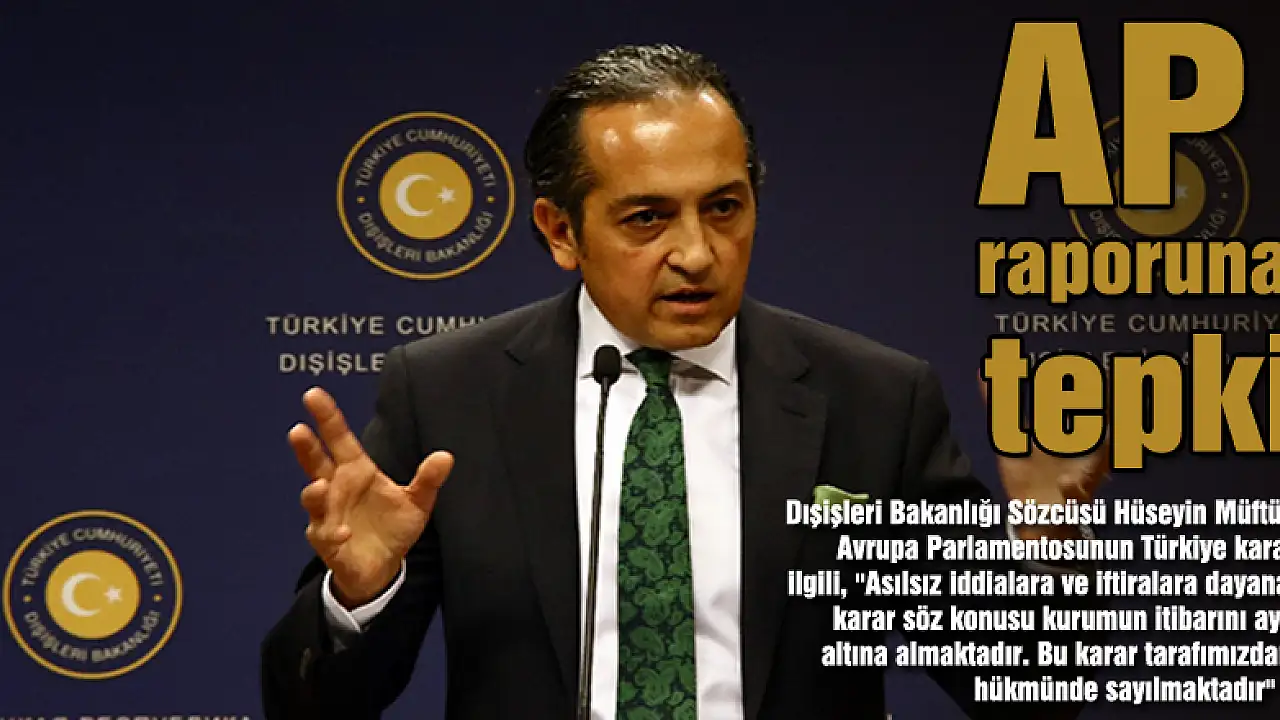Dışişleri Bakanlığı Sözcüsü Hüseyin Müftüoğlu, Avrupa Parlamentosunun Türkiye kararı ile ilgili,'Asılsız iddialara ve iftiralara dayanan bu karar söz konusu kurumun itibarını ayaklar altına almaktadır.Bu karar tarafımızdan yok hükmünde sayılmaktadır' dedi