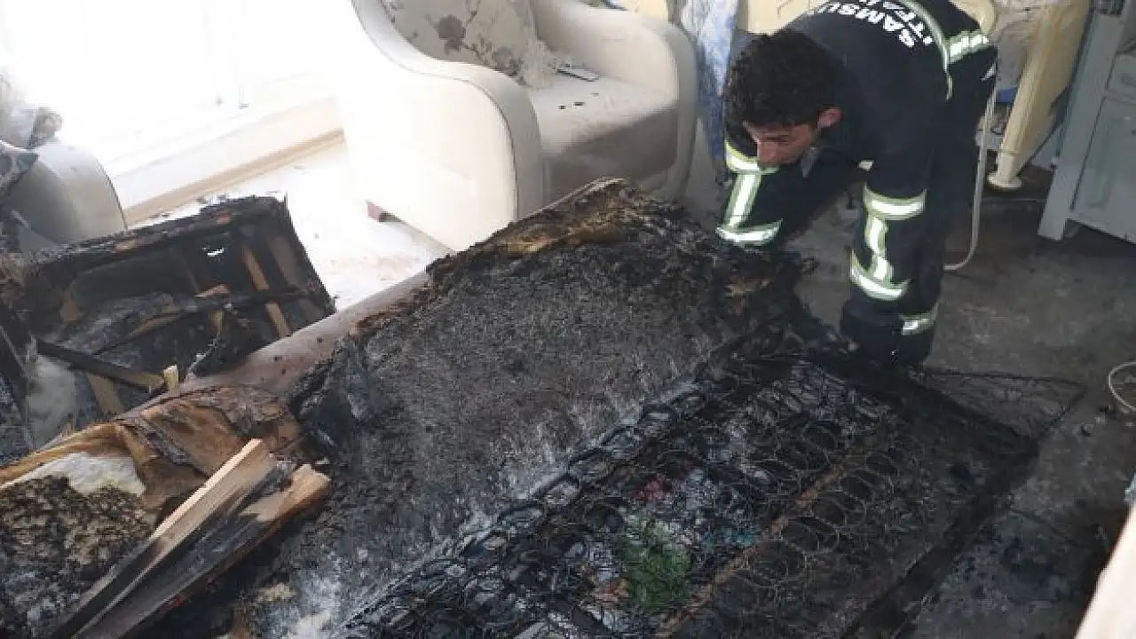 Yangın nedeniyle dairede maddi hasar oluştu.
