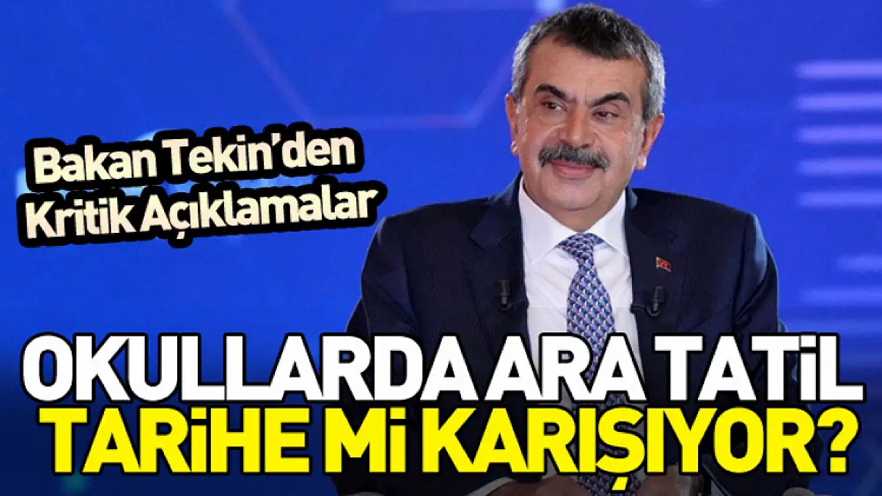 Milli Eğitim Bakanlığı’na bağlı ilk ve ortaöğretim kurumlarında ara tatilin kaldırılması gündemde. Bakan Yusuf Tekin, Mardin’de gazetecilere yaptığı açıklamada, ara tatilin kaldırılabileceği sinyalini verdi.