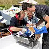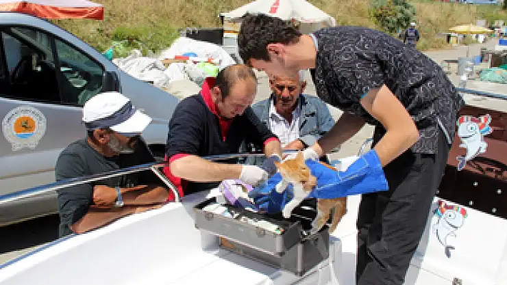 Samsun'da bir aracın ezdiği yavru kediye balıkçılar sahip çıktı.