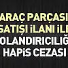Araç parçası satışı ilanı ile dolandırıcılığa hapis cezası