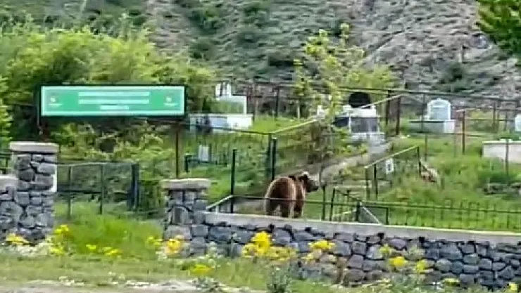 Gümüşhane'de son dönemde sık sık vatandaşların yaşam alanlarında görüntülenen ayılar, bu kez Süleymaniye Mahallesi'ndeki mezarlıkta ortaya çıktı.