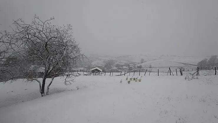 Mevsimin ilk karının yağdığı ilçede, kar yağışının aralıklarla devam ediyor.