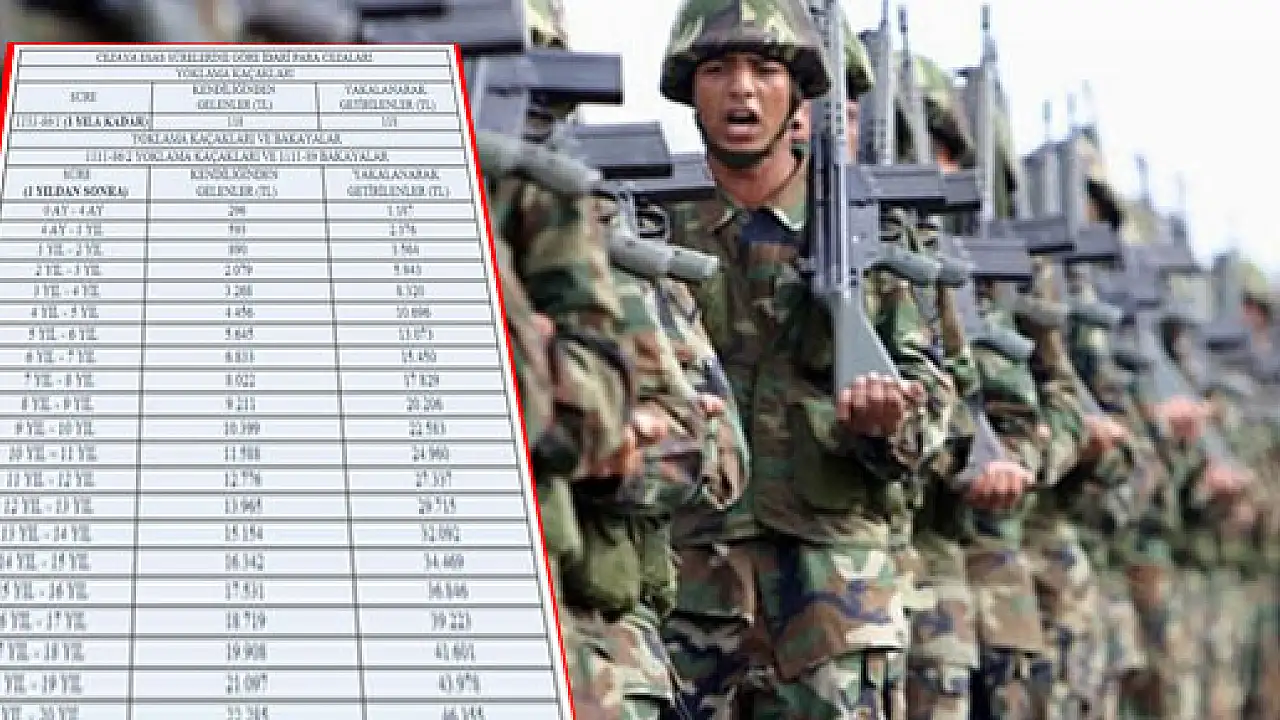 "Örnek olarak, 2013 yılında 1 yıla kadar yoklama kaçağı kalan ve işlemlerini kendiliğinden ya da yakalanarak gelerek tamamlatan yükümlüye 118 lira para cezası verilirken bu miktar, 2 yıla kadar yoklama kaçağı kalan ve işlemlerini kendiliğinden tamamlatan yükümlülere 593 lira, yakalanarak getirilen yükümlülere ise 2 bin 376 lira olarak, 5 yıla kadar yoklama kaçağı kalan ve işlemlerini kendiliğinden tamamlatan yükümlülere 3 bin 268 lira, yakalanarak getirilen yükümlülere ise 8 bin 320 lira olarak uygulanacak."