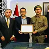 Jandarma Er Salih Bakiş’ı azminden dolayı tebrik eden Kaymakam Çağlar, Nutuk kitabını imzalayarak hediye etti. İlçe Milli Eğitim Müdürü Sezai Tural da askere okuma kitabı hediye etti.