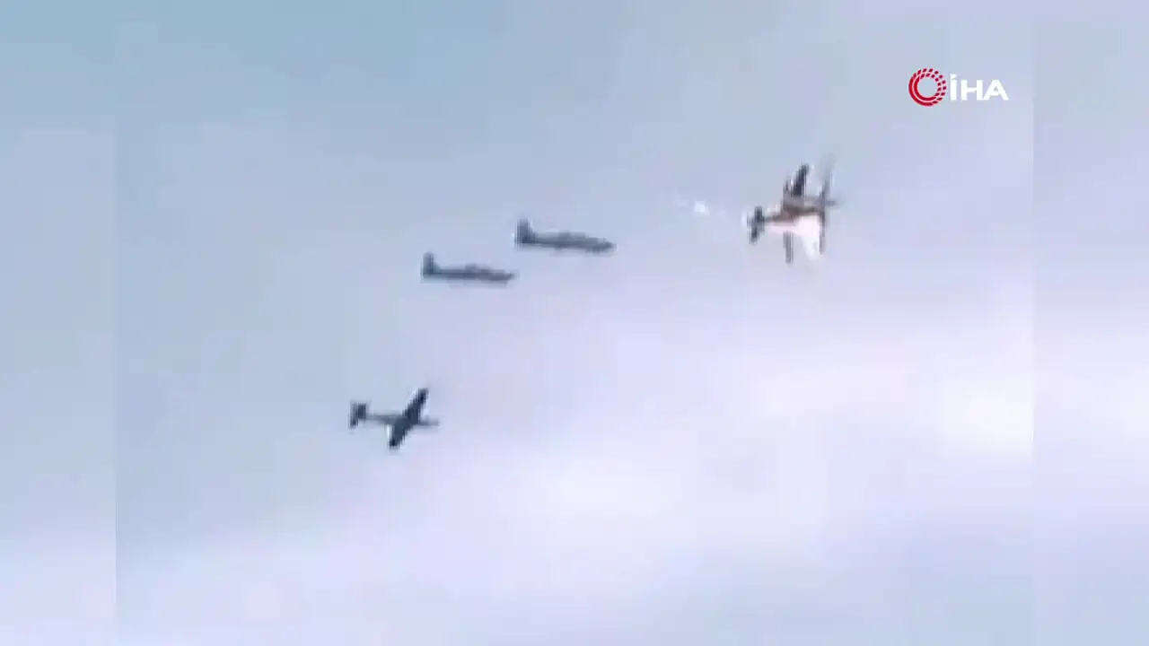 Öte yandan çevredekiler tarafından kaydedilen görüntülerde iki uçağın havada çarpıştığı ve birinin alev alarak düştüğü görüldü.