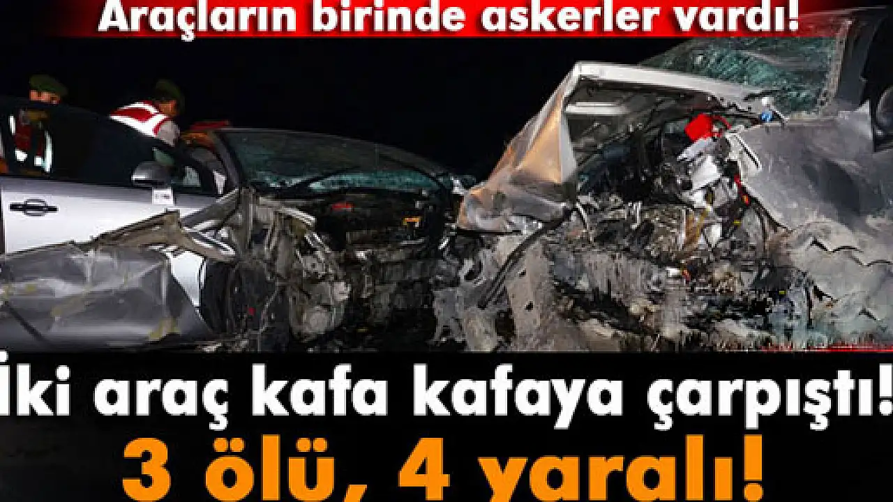 Aksaray'da iki otomobilin kafa kafaya çarpışması sonucu meydana gelen trafik kazasında 3 kişi öldü, 3'ü asker 4 kişi yaralandı.