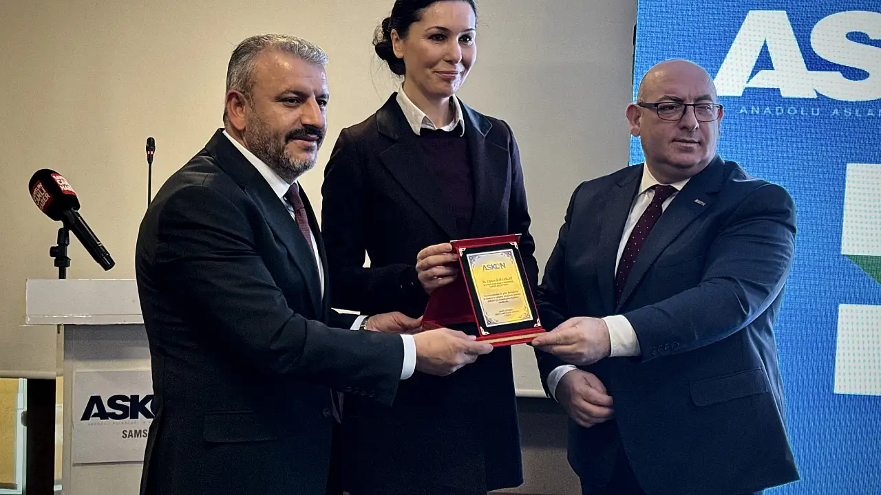 Konuşmaların ardından Karaaslan, ASKON'a yeni üye olanlara plaket verdi.