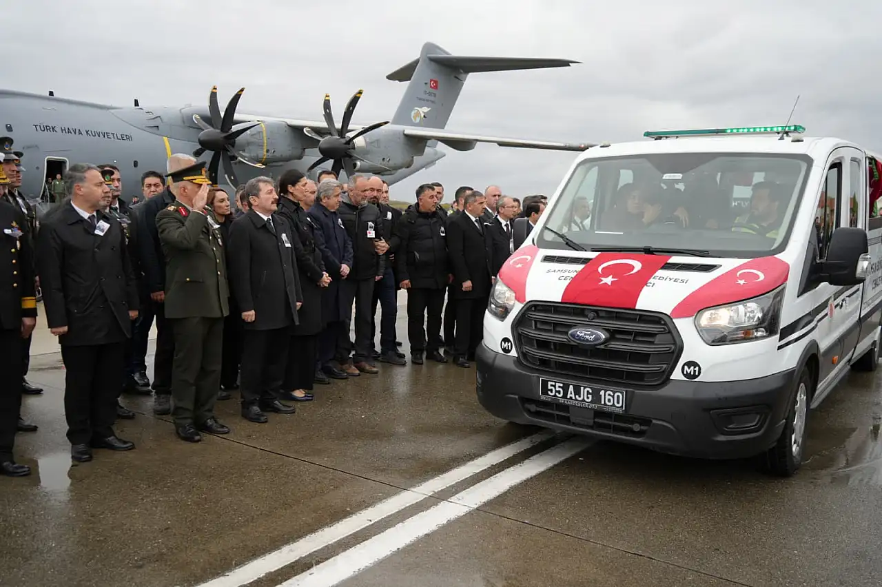Askeri kargo uçağının düşmesi sonucu şehit olan Hava Uçak Bakım Astsubay Üstçavuş Emre Altıok'un (32) naaşı Samsun Çarşamba Havalimanında karşılandı.
