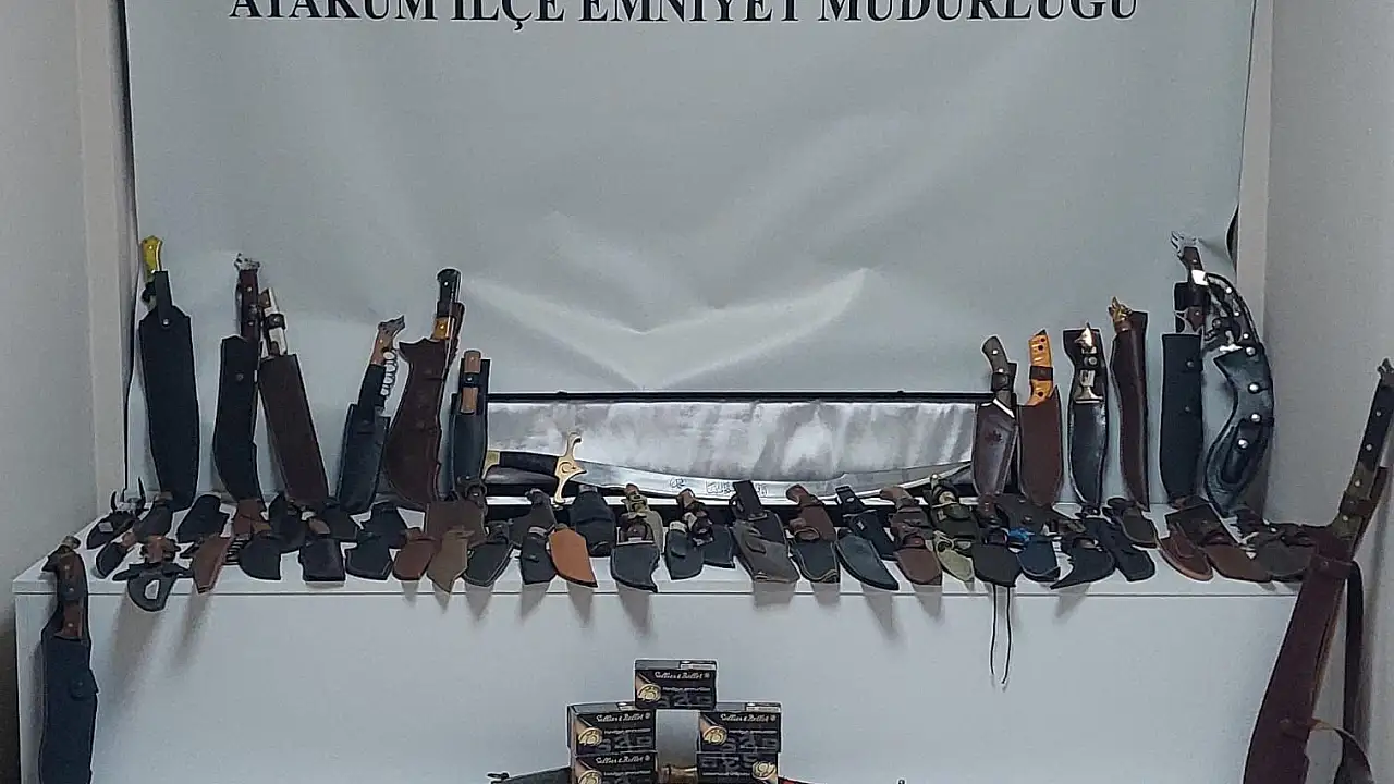 Samsun Emniyet ekipleri ruhsatsız silah ve çok sayıda bıçak ele geçirdi.