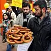 Samsun'da atamaları yapılmayan öğretmenler, simit satarak atanamamalarını protesto etti.