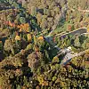 Atatürk Arboretumu'ndaki kartpostallık sonbahar manzarası havadan kuş başı cekildi