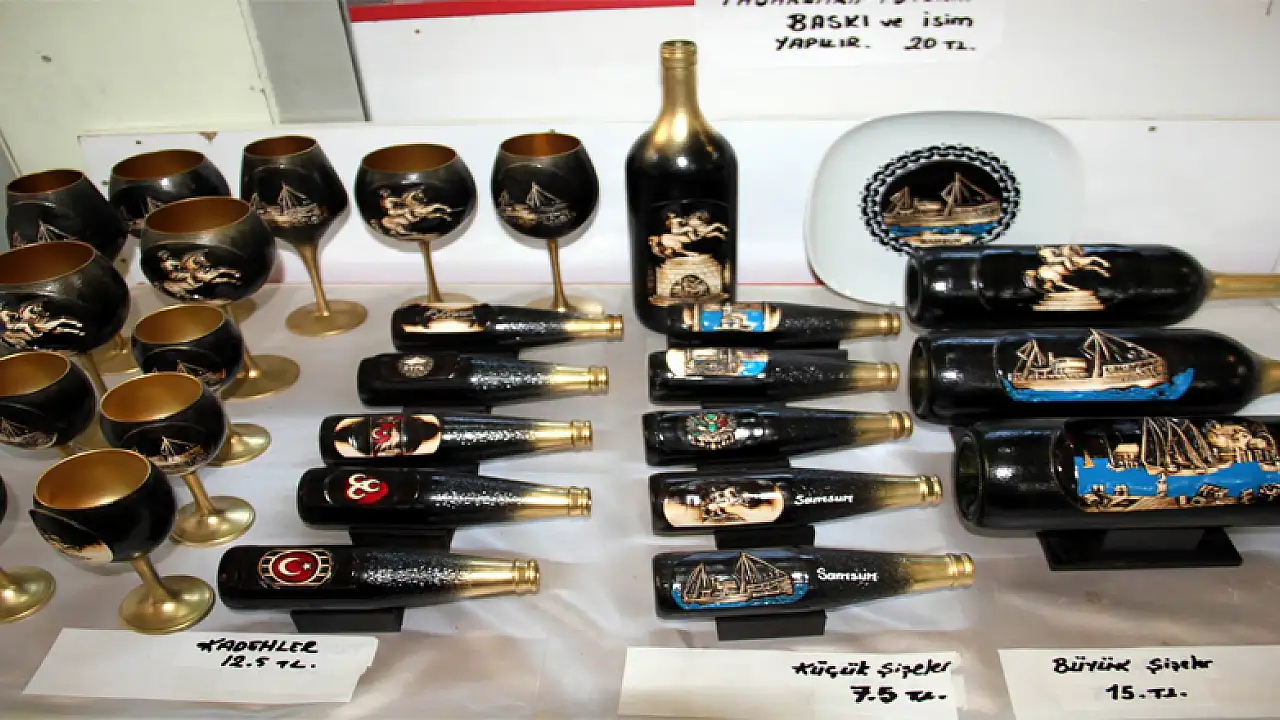 25 yıldır sanatını Samsun’da sürdürdüğüne dikkat çeken Samangül, “Hemen hemen her boydan şişelerin üzerinde işlem yapıyorum. Onların üzerilerine çeşit çeşit motifler işliyorum. Yeri geliyor çöpten şişe topluyorum. Bazı zamanlarda büfelerden ve meyhanelerden içki şişeleri geliyor. Bunların temizliğini yaparak bir sanat eserine dönüşmelerini sağlıyorum. Türkiye’nin tarihini şişeler, tabaklar ve kadehler üzerine işleyerek, bunları turizme ve ekonomiye sunuyorum. Bu şişeleri genelde temizlik işçileri toplayıp bana getirirler. Bende onlara her şişe başına 1 TL veririm. Bana göre atılan her bir şişenin sanatsal değeri vardır. Bir zamanlar çöplere atılan bu şişeler, yaptığım sanatsal çalışmalardan sonra evlerin en güzel yerlerine süs eşyası olarak konuluyor. Tabii bu şişelerin birer sanat eserine dönüşmesi hem yerli hem de yabancı turistlerin ilgisini çekiyor. Bundan daha güzel ne olabilir. Ben işimi severek yapıyorum. Bu sanatla uğraşmak beni mutlu ediyor” dedi.