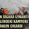 ATILAN SİGARA İZMARİTİ SEYİR HALİNDEKİ KAMYONETTE YANGIN ÇIKARDI