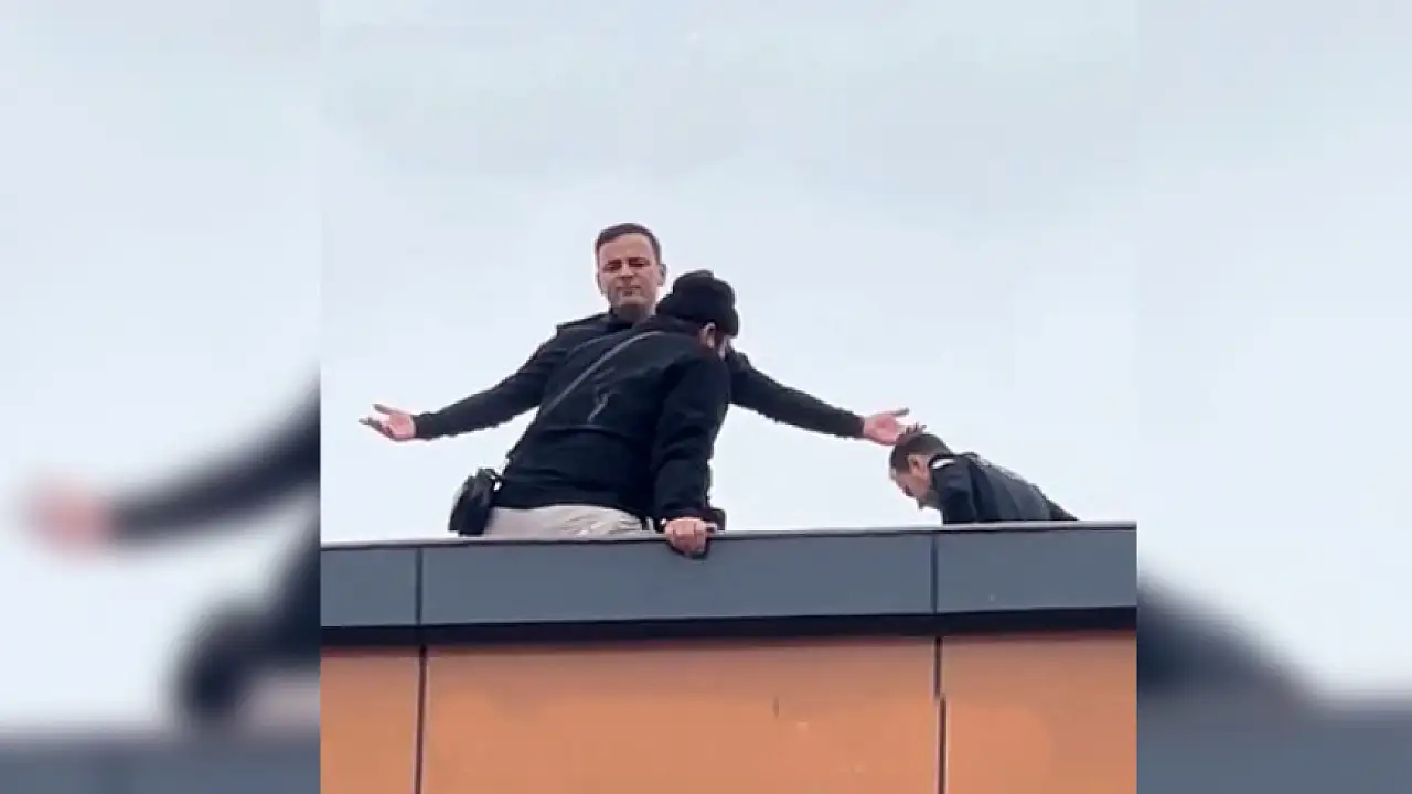 Bir rezidansın çatısına çıkan kapıcı görevlisinin yüksekten atlama girişimini başkomiser önledi.