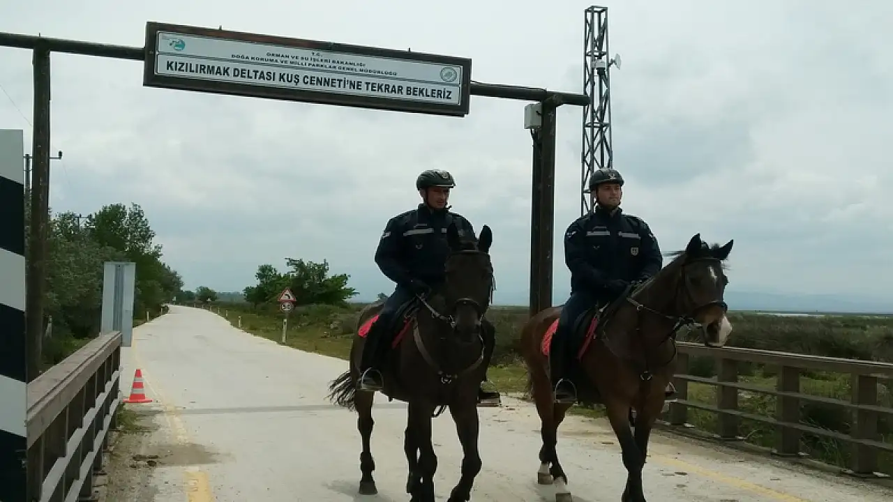 Nevşehir Jandarma Atlı Köpek Eğitim Merkezinden (JAKEM) Samsun il Jandarma Komutanlığı emrine verilen 3 atlı tim Kızılırmak Deltası'nda devriye görevine başladı. 10 Ağustos tarihine kadar görev yapacak olan atlı tim ekipleri Kızılırmak Deltası Kuş Cenneti'nde devriye gezerek kaçak avcılarla mücadele edecek.