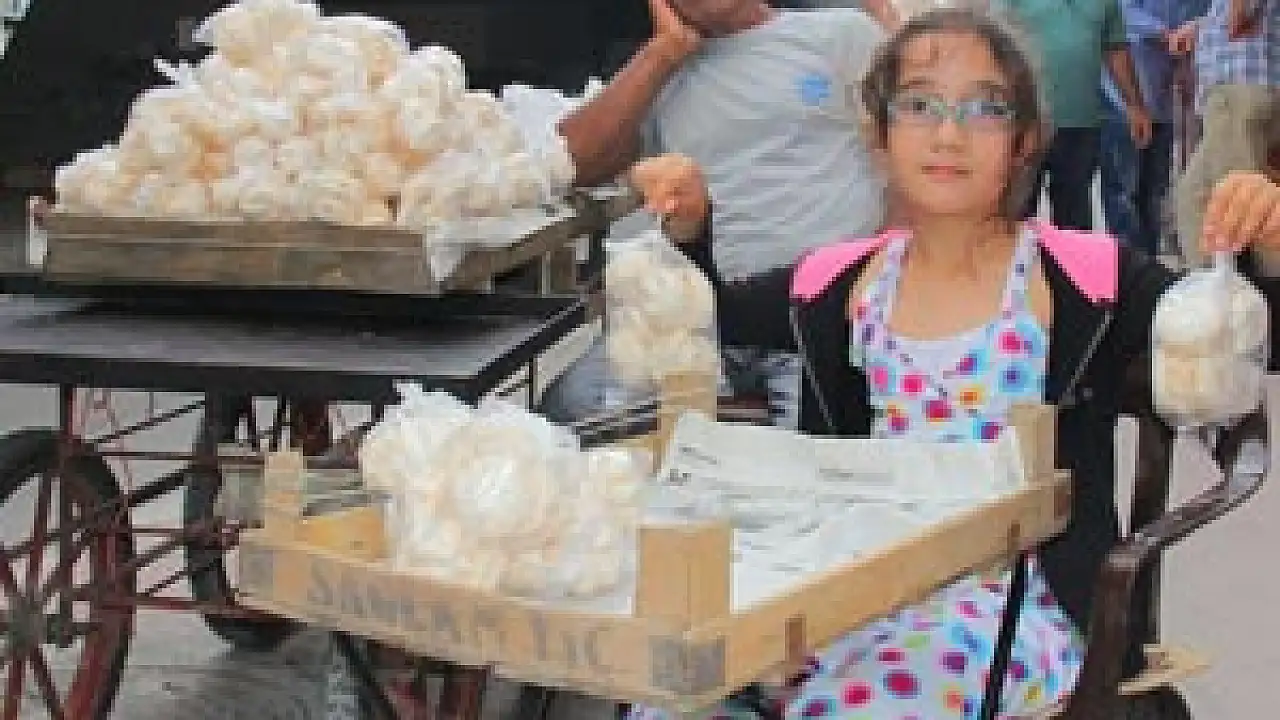 Samsun'da, Ramazan geleneği olarak bilinen kaymaklı atomu 20 yıldır her Ramazan'da satan 63 yaşındaki Mehmet Özinal'a, 9 yaşındaki torunu Yaren Görgülü rakip çıktı.