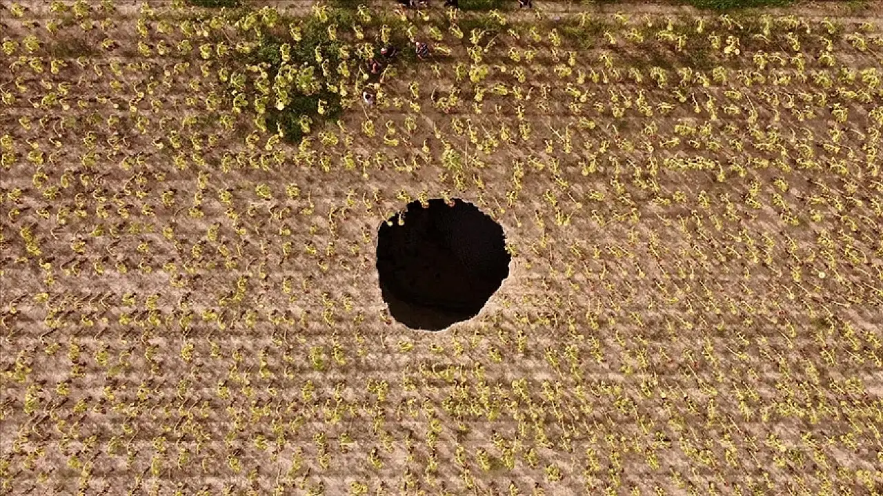 Eskişehir'de ayçiçeği tarlasında 5 metre çapında obruk oluştu