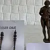 Şüpheli, Sarıkemer Mahallesi'nde heykel ile objeleri satmak isterken yakalanarak gözaltına alındı.