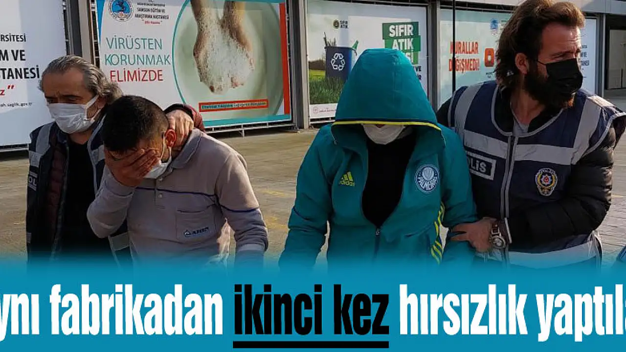 Samsun'da aynı fabrikadan ikinci kez hırsızlık yaptıkları iddia edilen 2 kişi polis tarafından gözaltına alındı.