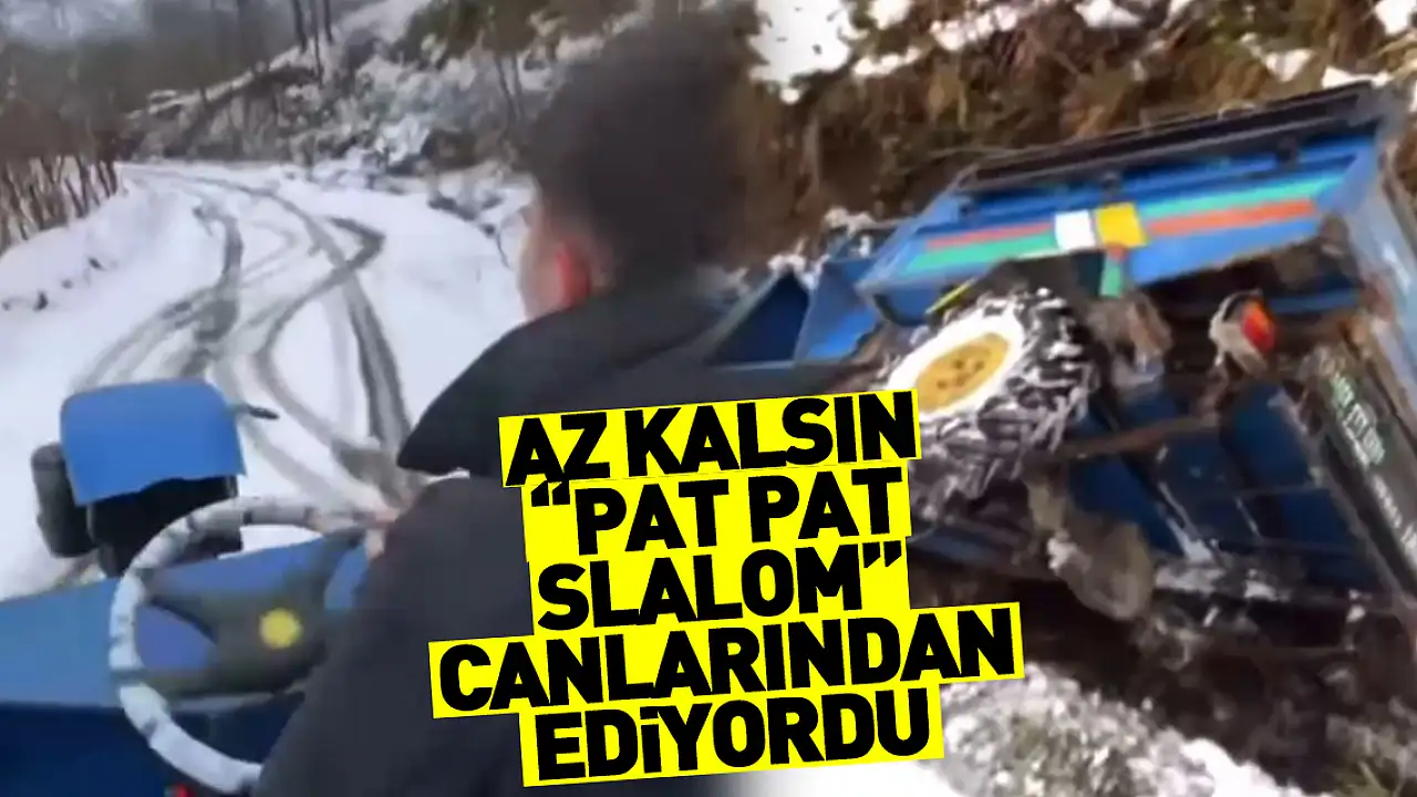 Samsun’un Çarşamba İlçesi Çatak Mahallesi’nde uzun süredir kar yağmamasının ardından yolların karla kaplanmasını fırsat bilen gençler, pat pat olarak bilinen tarım aracıyla riskli ve tehlikeli “pat pat slalom” hareketleri yapmaya başladı. Mahallenin dik yollarında araçla makas atar gibi manevralar yaparak eğlenceye devam eden gençler, bir süre sonra aracın kontrolünü kaybetti. Pat pat, yolda bir sağa, bir sola savrulduktan sonra devrildi.